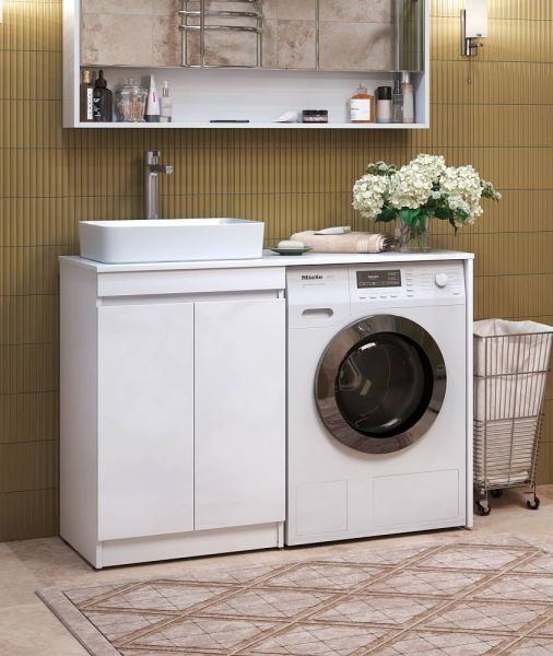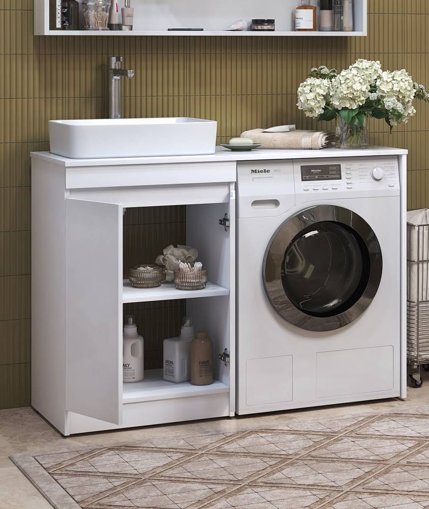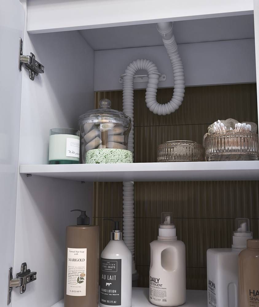 Специальный сифон Vigo в комплекте.Материал корпуса: влагостойкая ЛДСПМатериал фасада: ЛМДФПокрытие фасада: пленка ПВХОтсутствие лицевой фурнитуры – интегрированная ручка.В комплект поставки входит только тумба, столешница приобретается отдельно!