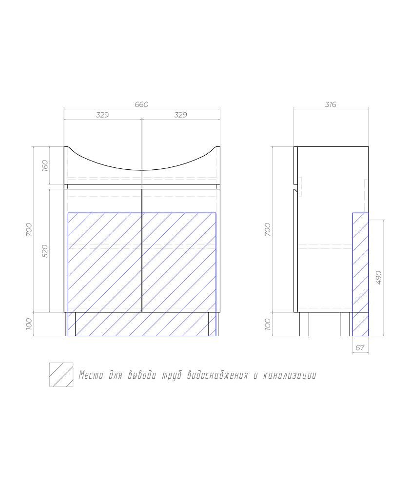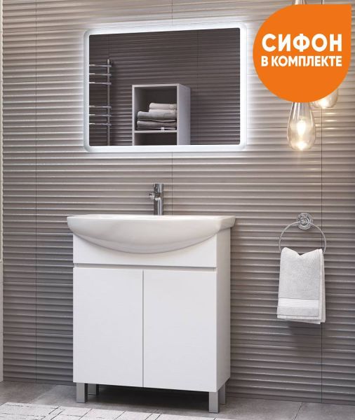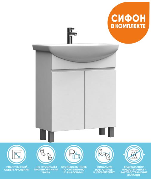 2 дверцы, 1 полка ЛДСП, опоры регулируемые квадратные.Специальный сифон Vigo в комплекте.Материал корпуса и фасада: влагостойкая ЛДСПДверцы: петли с механизмом плавного закрыванияОтсутствие лицевой фурнитуры – интегрированная в фасад ручка