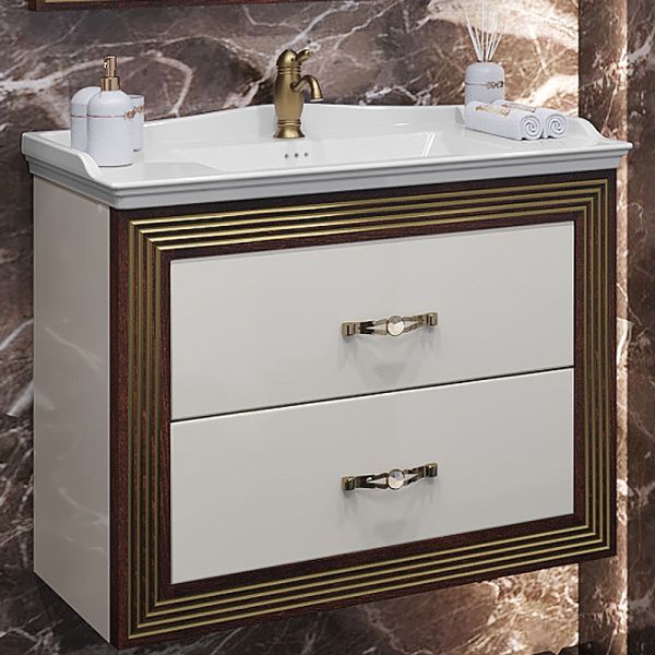 Тумба под раковину Opadiris Карат 80 00-00003520 подвесная. Выглядит роскошно и отличается богатством декорированных элементов и элегантным шиком. Прекрасно дополнит современный интерьер ванной комнаты.Характеристики:Цвет: слоновая кость, темное дерево, золото
