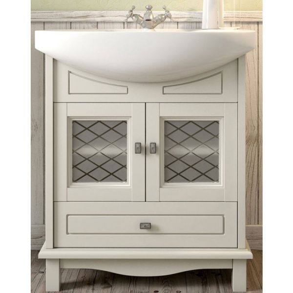 Тумба под раковину Opadiris Омега 65 00-00003138. Цвет: слоновая кость.Элегантные и лаконичные формы изделия идеально впишутся в любой интерьер в стиле прованс. Фасадные элементы украшены оригинальными ромбовидными узорами стеклянных витражей.Материал фасада/корпуса: массив бука+филенка МДФ/массив бука+ЛДСП.