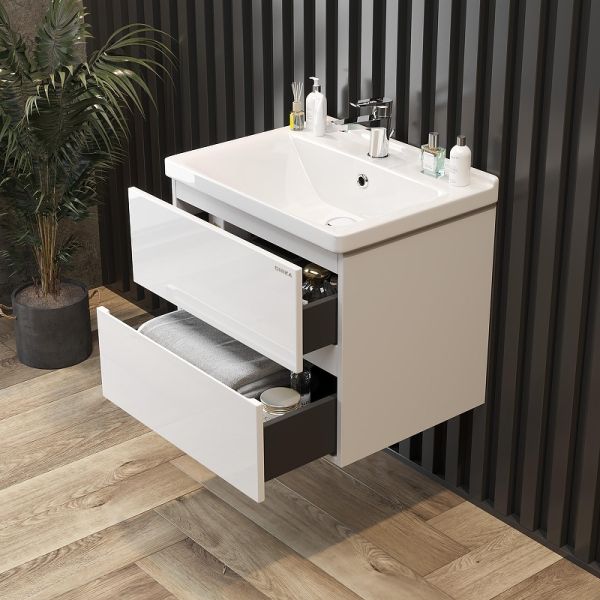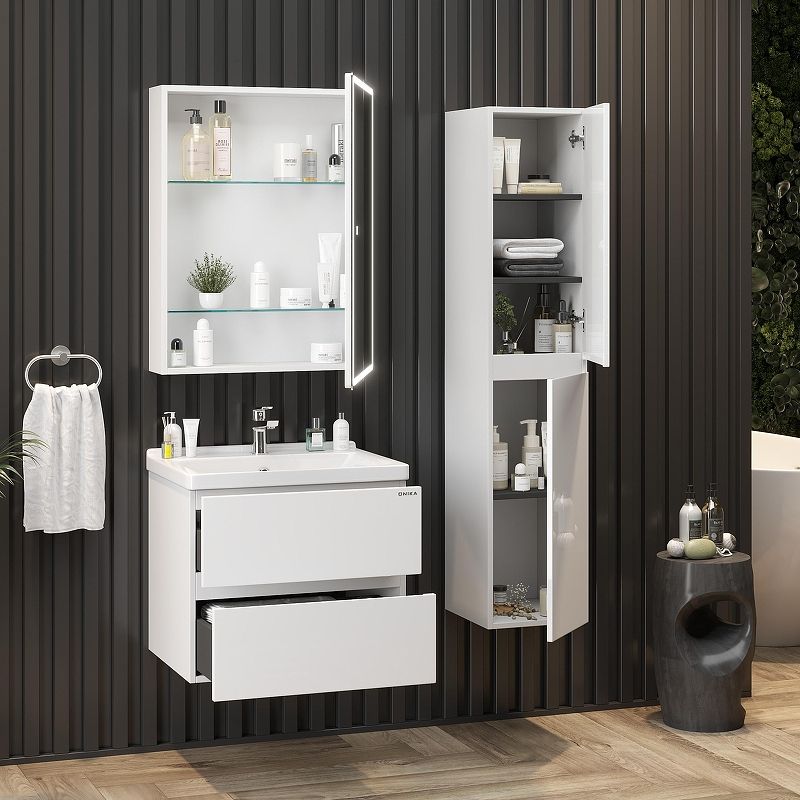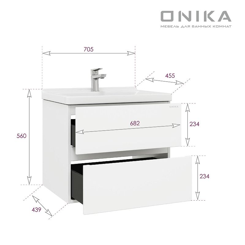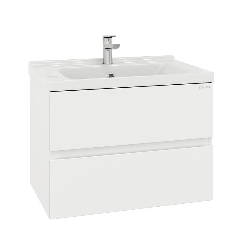 Подвесная тумба для ванной комнаты Onika Эвада 70 сочетает в себе стильный минималистичный дизайн, белую глянцевую поверхность и высочайшее качество исполнения.