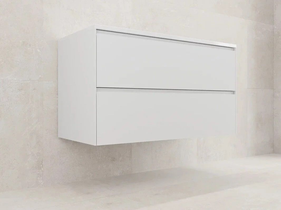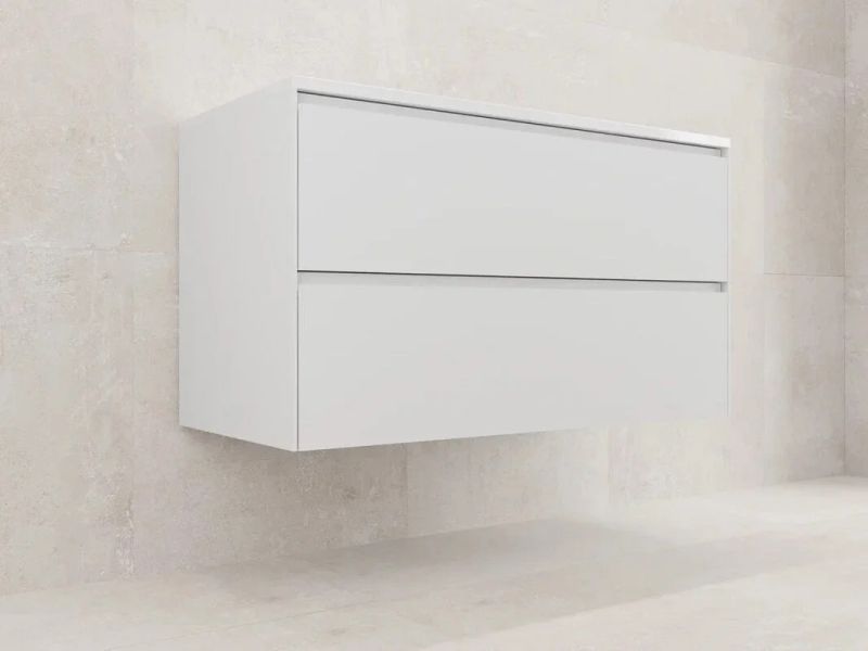 - Матовая белая поверхность придает тумбе современный и элегантный вид.