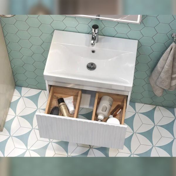Тумба под раковину подвесная Velvex Compo tp.COM.9696.60.1Y белый глянец, 60 см: 1 выдвижной ящик с механизмом открывания push-to-open.