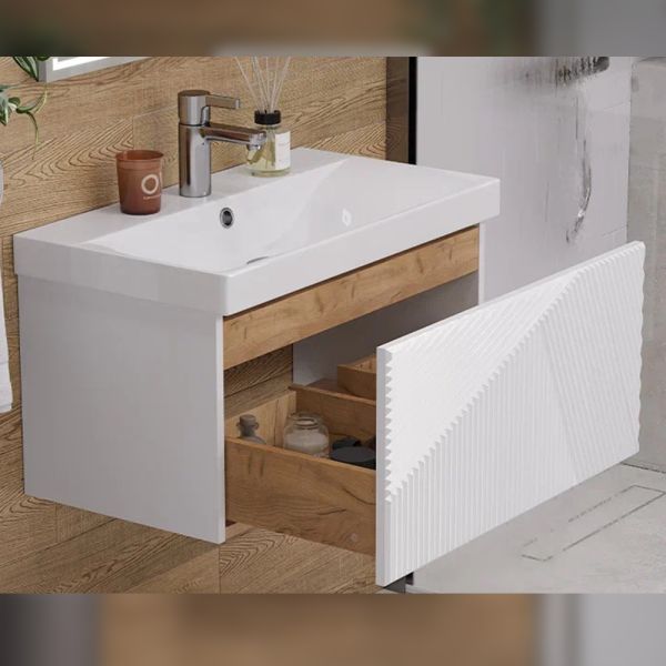 Тумба под раковину подвесная Velvex Edge tp.EDG.9696.70.1Y белый глянец, 70 см: 1 выдвижной ящик с механизмом открывания push-to-open.