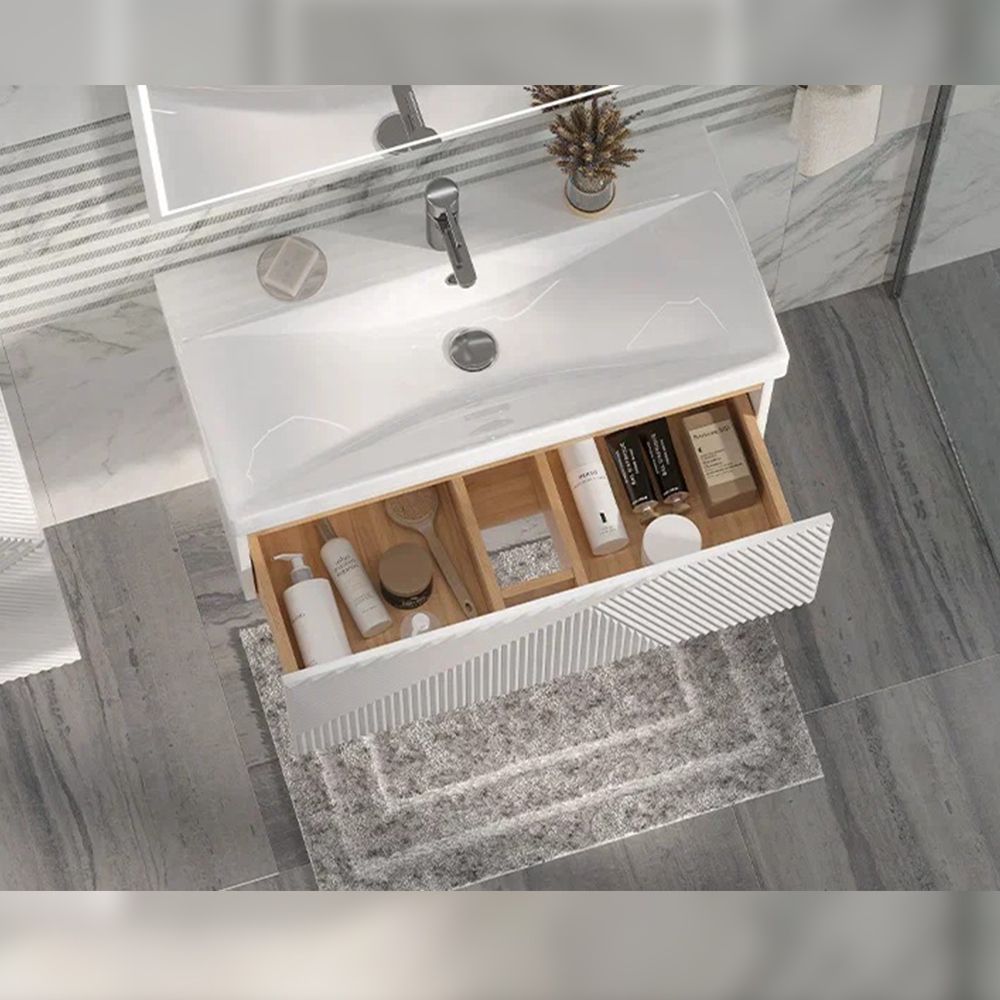 Тумба под раковину подвесная Velvex Edge tp.EDG.9696.80.1Y белый глянец, 80 см: 1 выдвижной ящик с механизмом открывания push-to-open.