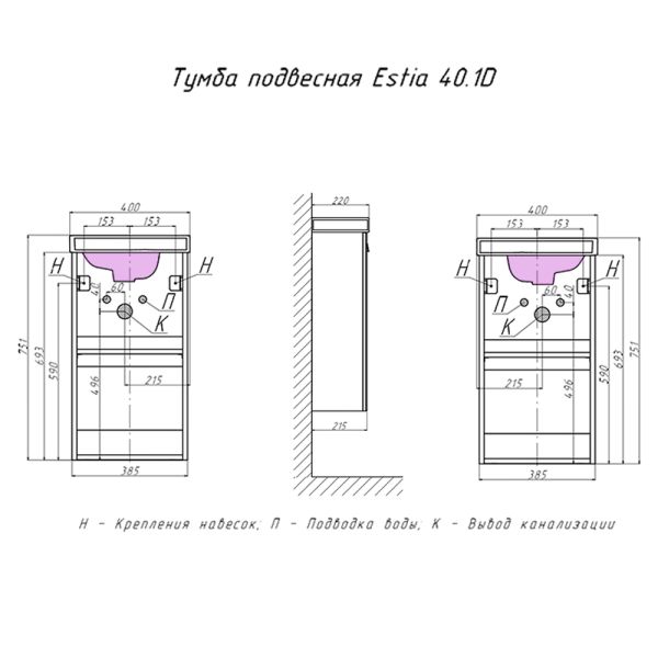 Тумба под раковину подвесная Velvex Estea tp.EST.MOD.40.1D, 40 см купить