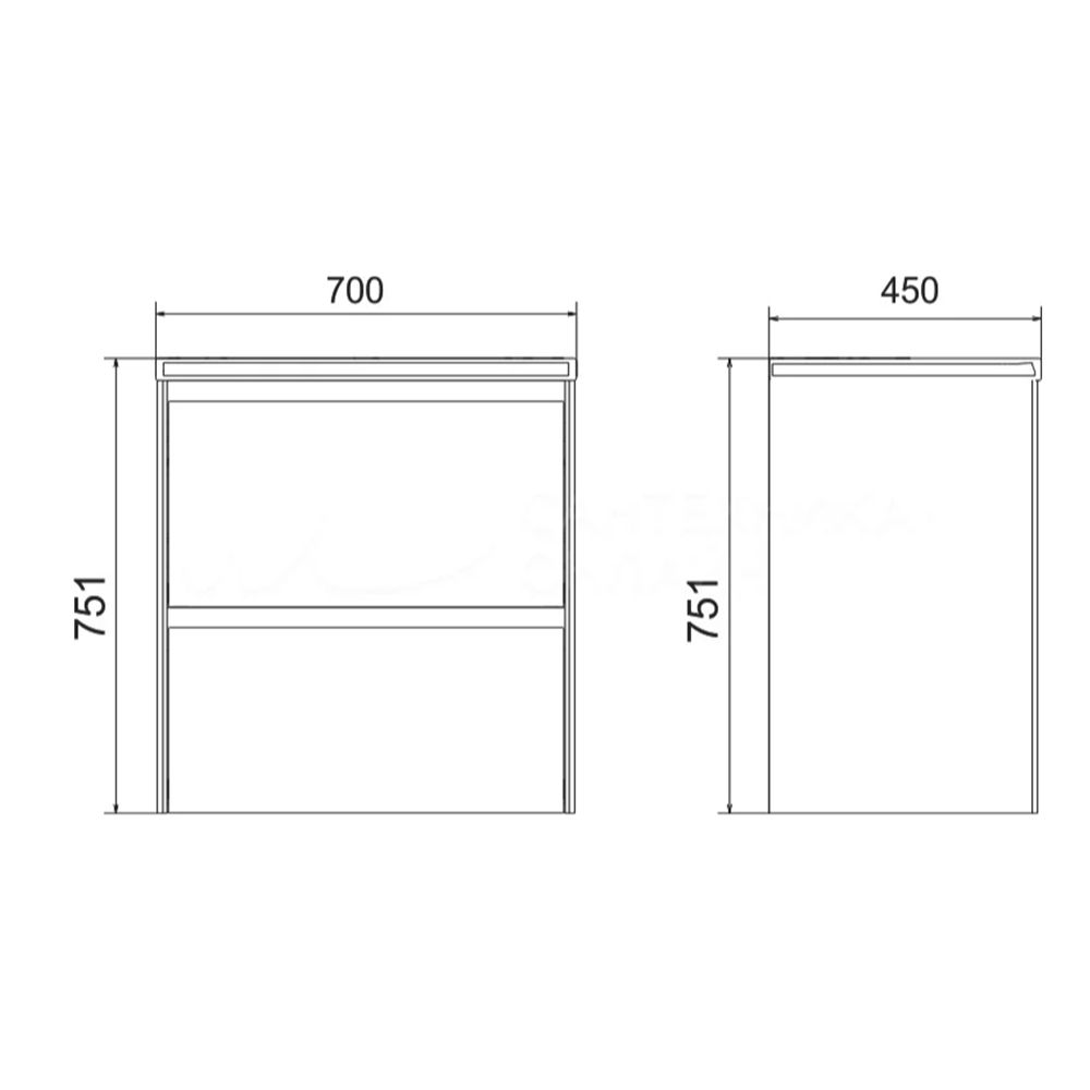 Тумба под раковину подвесная Velvex Klaufs tp.KLA.COM.70.2Y, 70 см: 2 выдвижных ящика, выдвижной органайзер.