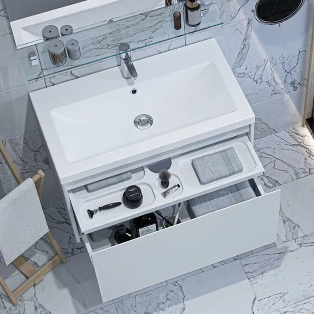 Тумба под раковину подвесная Velvex Klaufs tp.KLA.COM.80.1Y, 80 см: 1 выдвижной ящик, выдвижной органайзер.