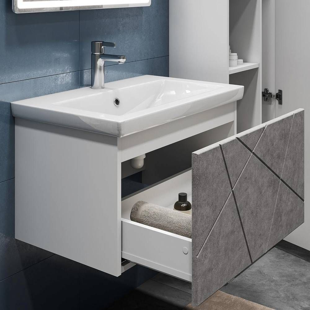 Тумба под раковину подвесная VIGO Geometry 033 бетон, 60 см.Гарантийный срок 2 года.Монтаж: подвесной.Доводчик: нет.Нажимной механизм: да.