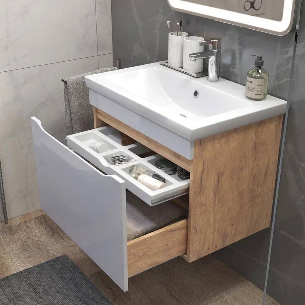 Тумба под раковину подвесная VIGO Grani 165 дуб золотой, 70 см. Гарантийный срок 2 года. Монтаж: подвесной. Доводчик: нет. Нажимной механизм: нет.