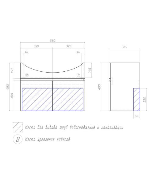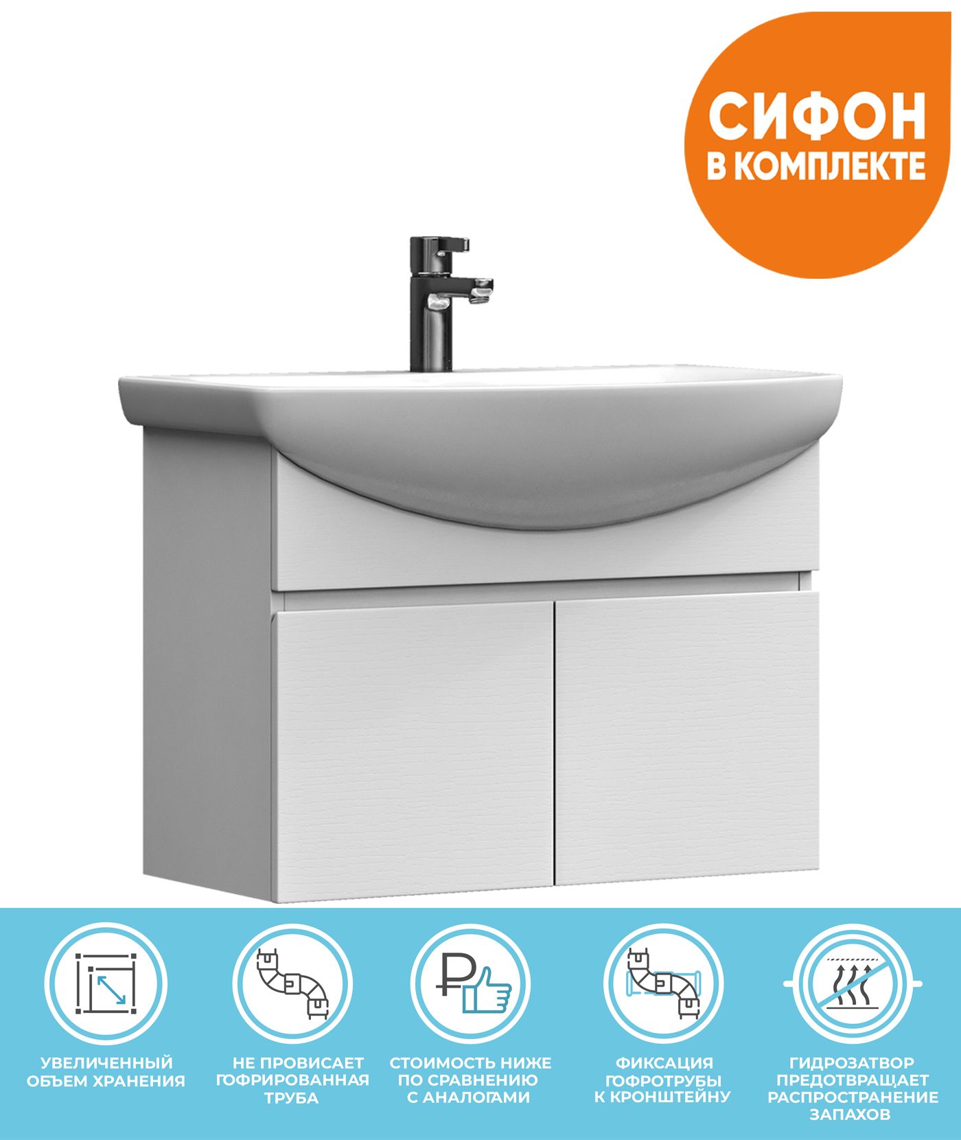 2 дверцы, Специальный сифон Vigo в комплекте.Материал корпуса и фасада: влагостойкая ЛДСПДверцы: петли с механизмом плавного закрыванияОтсутствие лицевой фурнитуры – интегрированная в фасад ручка