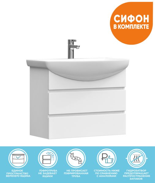 2 ящика. Специальный сифон Vigo в комплекте.Материал корпуса и фасада: влагостойкая ЛДСПЯщики: направляющие полного выдвиженияОтсутствие лицевой фурнитуры – интегрированная в фасад ручка