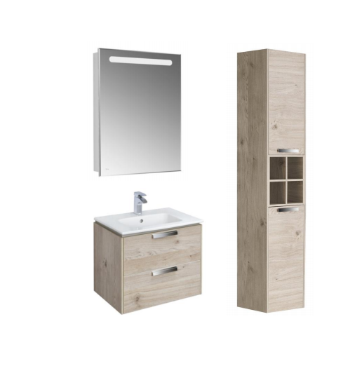 Тумба под раковину Roca Lago 7857295444 60 см дуб Ширина: 591 ммГлубина: 448 ммВысота: 490 ммТумба:- белый глянец: фасад – MDF, корпус – ВЛДСП- светлый дуб: фасад – ВЛДСП, корпус – ВЛДСП- направляющие GTV плавного выдвижения- ящики полного выдвижения- в комплекте компактный сифон Prevex