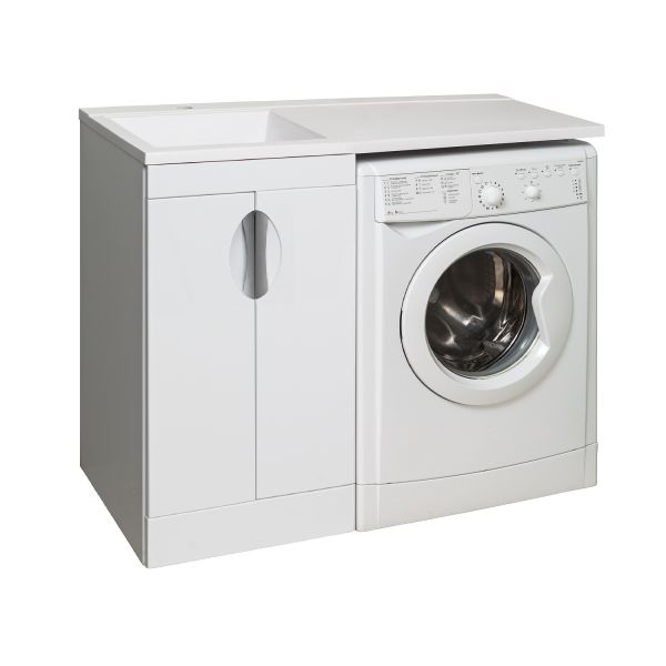Тумба "Лира" 45 см напольная с двумя распашными дверками и одной встроенной полкой. Устанавливается на 4-е пластиковые опоры, скрытые за нижней съемной фальшь-панелью. Комплектуется умывальником из литьевого мрамора "Gamma 105 лайт" Умывальник устанавливается на тумбу и кронштейн. Модель предусматривает установку стиральной машины под крылом умывальника