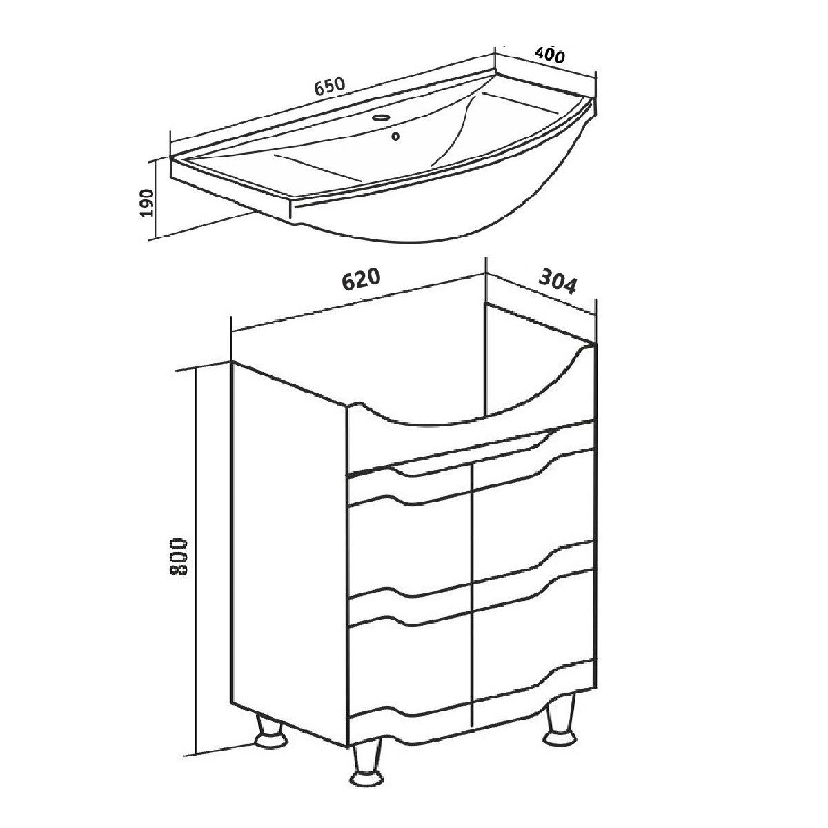 Тумба под умывальник напольная с двумя распашными фасадами и одной внутренней полкой. Петли со встроенным доводчиком, ножки хром - 2шт, ножки пластик -2шт.