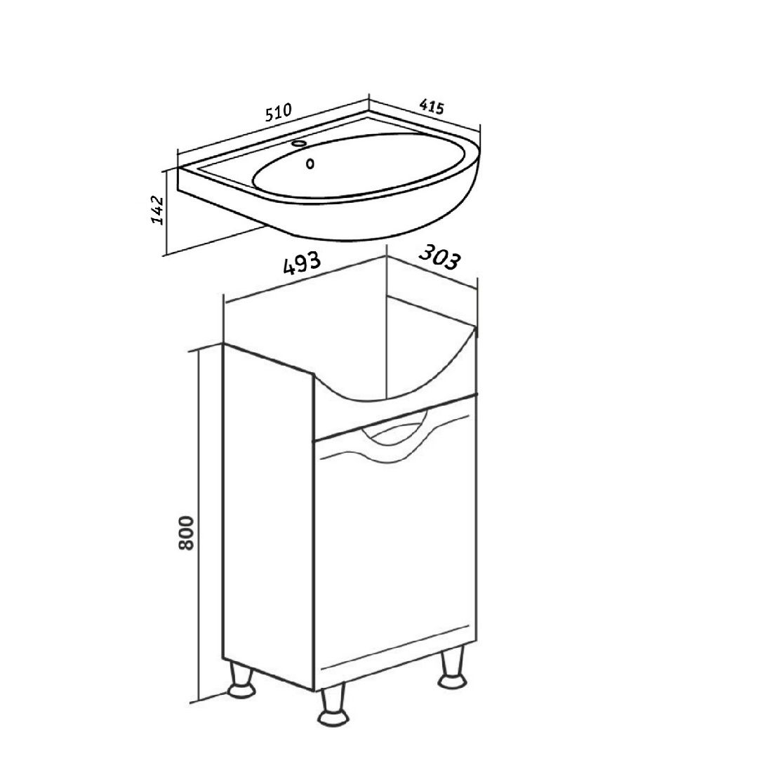 Тумба под раковину Runo (под умывальник Уют 50) Фортуна 50 (00000001135)
