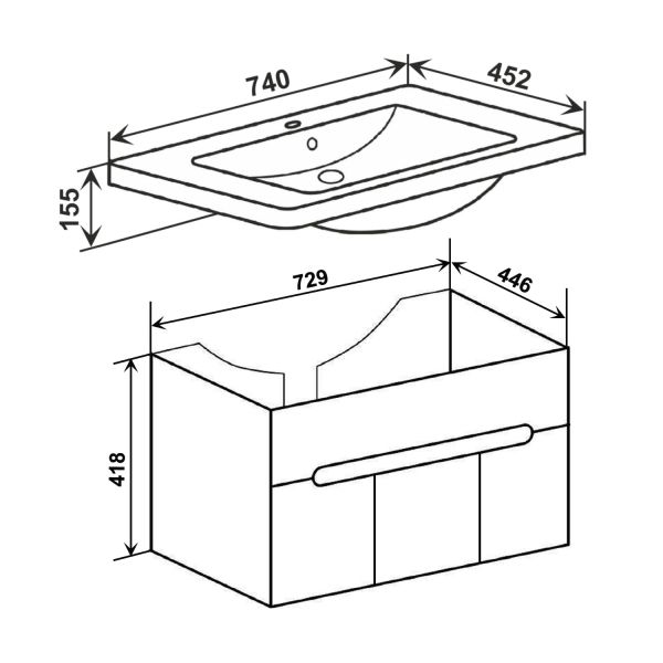 Тумба под раковину Runo подвесная 3 двери (под умывальник Omega 75) Парма 75 (00-00001039)