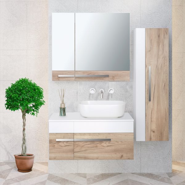 Тумба под раковину Runo подвесная крафтовый дуб Вудлайн 85 (00-00001344)