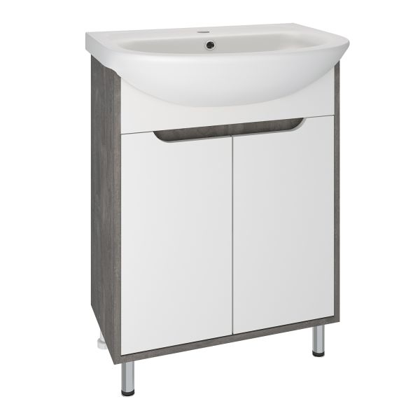 Тумба с раковиной RUNO ЭКО - превосходное решение для современного оснащения ванной комнаты. Тумба под раковину ЭКО (напольная) это стильное сочетание текстуры природного необработанного камня на корпусе с белыми фасадами из ДСП. Тумба в ванную имеет две распашные дверцы и одну внутреннюю полку. В комплекте идут петли, 2 хромированные и 2 пластиковые ножки. Тумба для ванной комплектуется керамической раковиной "УЮТ" (610*470 мм). Раковина имеет глубину 21 см. Мебель для ванной RUNO - красота и практичность в мелочах!