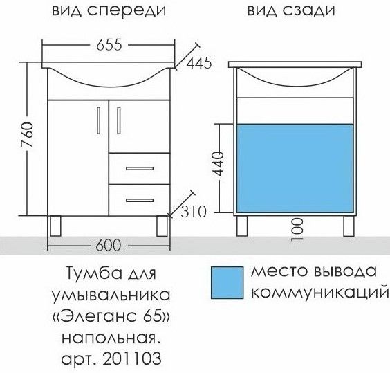 Тумба под раковину СанТа Элеганс 201103 65см белый