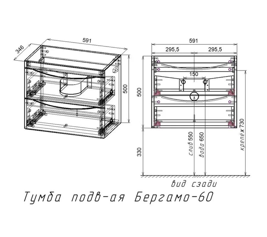 Тумба под раковину Style Line El Fante Бергамо мини 60 Люкс антискрейтч Plus, 60 см, подвесная, серый, СС-00002317Основные характеристики:Тумба под раковину