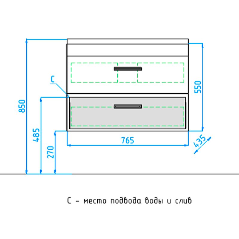 Габариты корпуса тумбы (ШхВхГ): 765х550х435 мм.