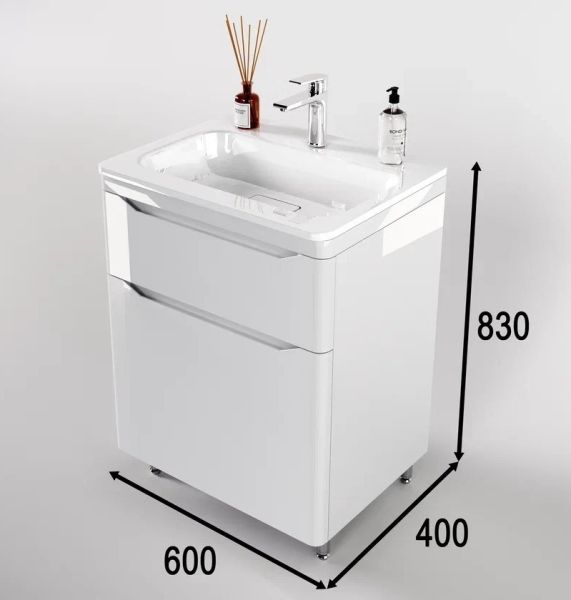 Тумба под раковину Style Line Марелла 60 Люкс Plus СС-00002396 белый глянец