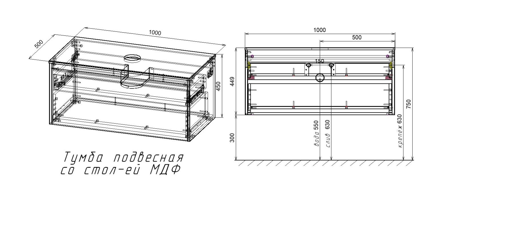 1 выкатной/1 скрытый ящик soft closeУсловный размер: