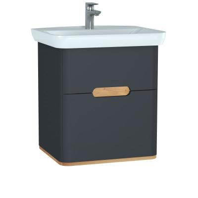 Шкаф Sento с раковиной, с 2 ящиками, 65 см, с LED подсветкой, цвет матовый антрацит ( ножки 61069 заказываются отдельно )