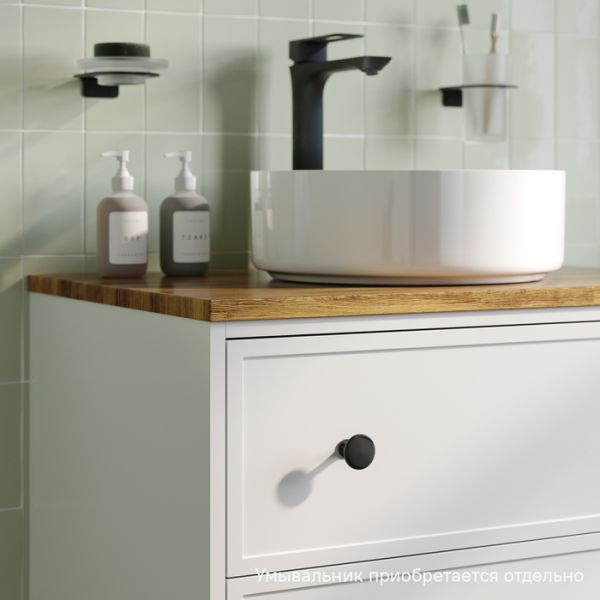 Компактная подвесная тумба Torr классического молочно-белого цвета со столешницей из клееного натурального дуба. Сочетает в себе узнаваемый стиль и практичность популярного скандинавского дизайна. Ее четкие формы, теплый цвет дерева, фасады с декоративной филенкой, круглые ручки смотрятся гармонично и впишутся в любой современный интерьер. Подойдет любой накладной умывальник, покупается отдельно.