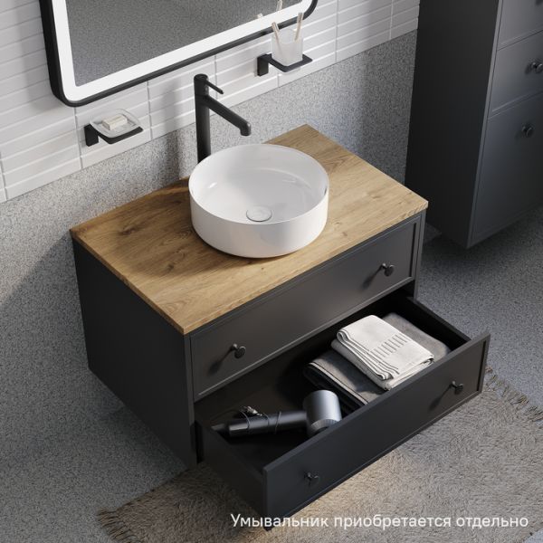 Тумба подвесная IDDIS Torr TOR80DVi95K со столешницей 80см дуб верона/тёмно-серый