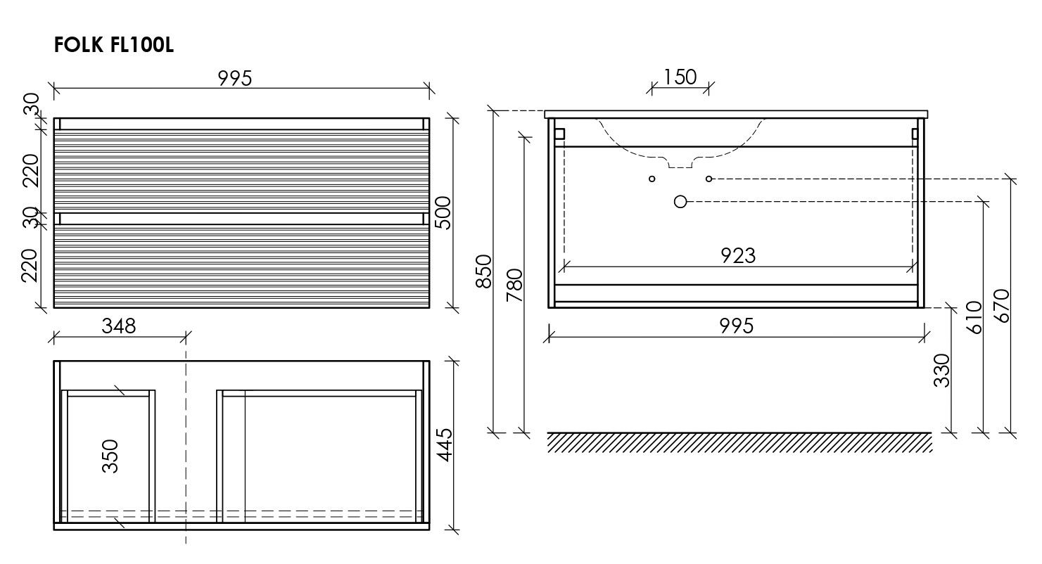 Размер 995х445х500, левая