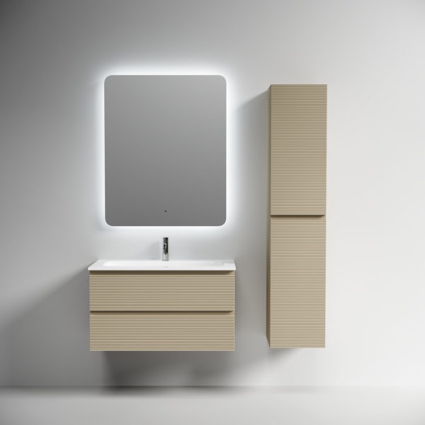 На изображении тумба Folk представлена с зеркалом RAY, смесителем из коллекции ETNA и раковинами Grace CN7019