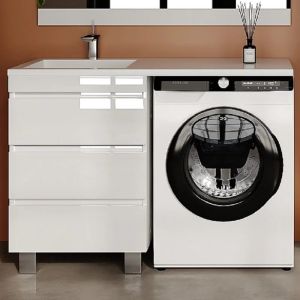 Тумба подвесная Style Line Даллас Леон 120 Люкс Plus СС-00002439 под раковину для стиральной машины три ящика белый купить