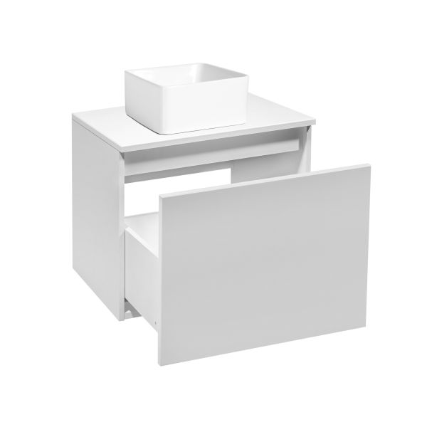 Тумба под раковину в ванную RUNO БАРИ (подвесная) - безупречное сочетание модных тенденций с классическим оформлением ванной комнаты. Тумба под раковину БАРИ оснащена выдвижным ящиком на шариковых направляющих, с системой плавного закрывания. Цвет тумбы классический - белый, что идеально подходит для любого интерьера ванной комнаты. К тумбе для ванной подойдут умывальники на столешницу: «UNO 24» (24х24см) – очень маленькая модель, идеально подходит для ограниченного пространства в небольших помещениях. Строгая квадратная геометрически правильная форма раковины, усиливает идею лаконичности в дизайне, устанавливается на столешницу, накладным методом. «DUО 38» (38х24см) – маленькая модель, идеально подходит для ограниченного пространства в небольших помещениях. Строгая прямоугольная геометрически правильная форма раковины с округлыми углами, усиливает идею лаконичности в дизайне, устанавливается на столешницу, накладным методом.