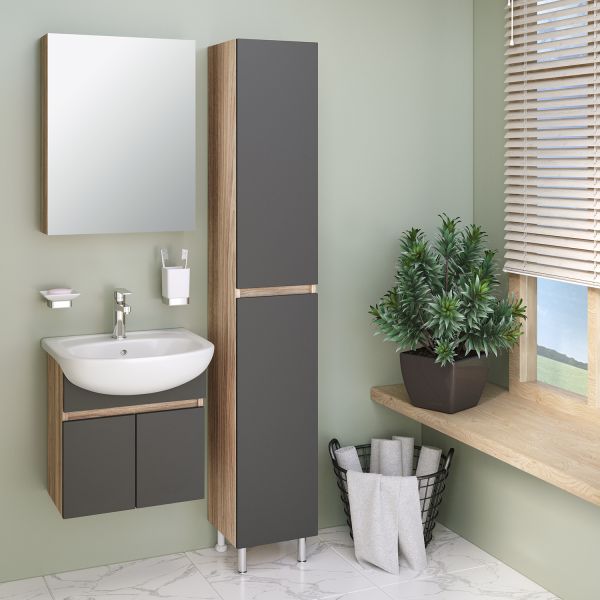 Тумба под раковину для ванной RUNO ЛАДА - модное и оригинальное решение для бюджетного оснащения ванной комнаты. Коллекция мебели ЛАДА выполнена в трёх цветах - классическом белом, в стильных и модных цветах - графит и крафтовый дуб . Тумба под раковину оснащена двумя распашными дверцами, каждая дверца укомплектована двумя петлями, верхняя с доводчиком, нижняя без доводчика. К тумбе подходит керамическая раковина "Уют" (500*420 мм). Раковина глубиной 18 см. Мебель для ванной RUNO - красота и практичность в мелочах!
