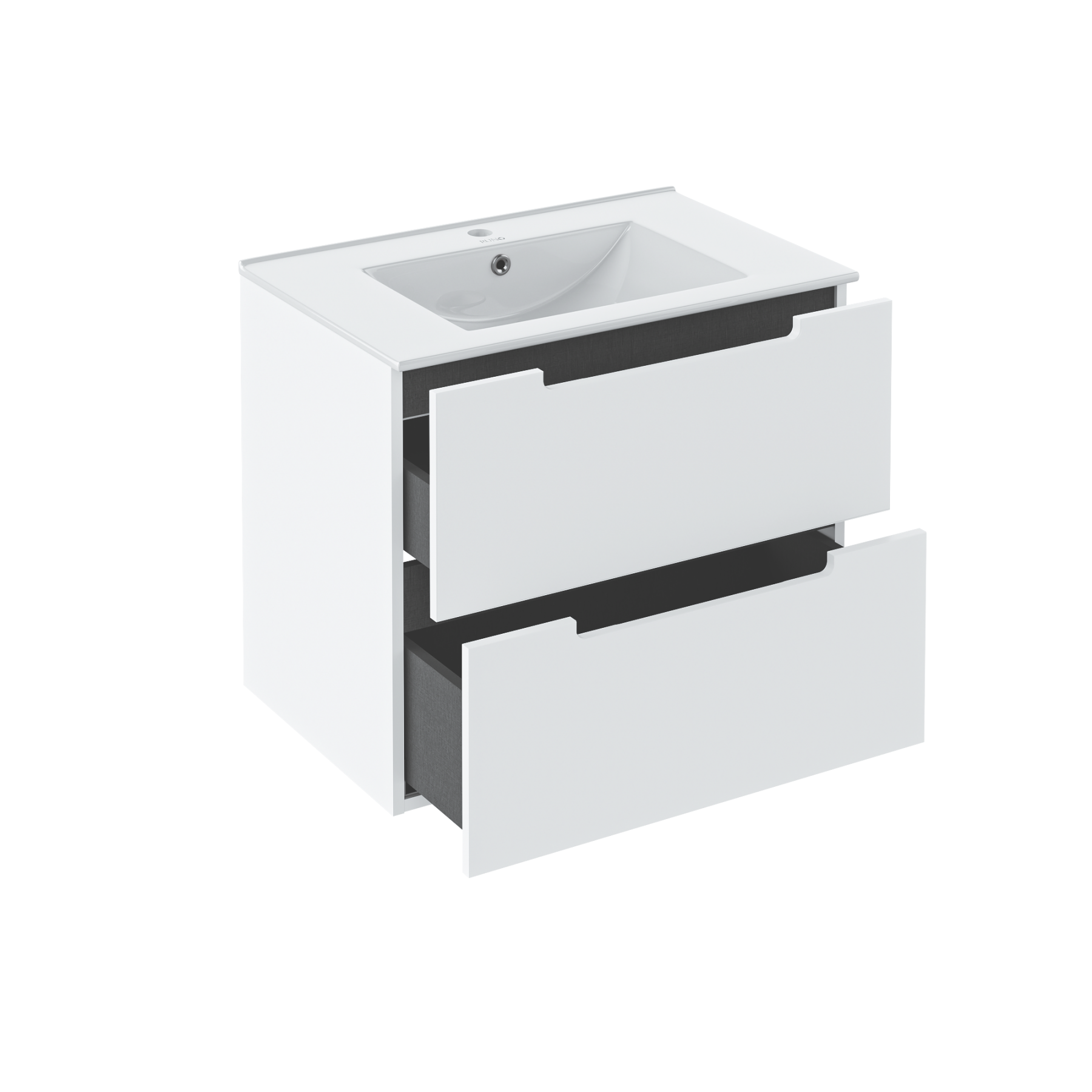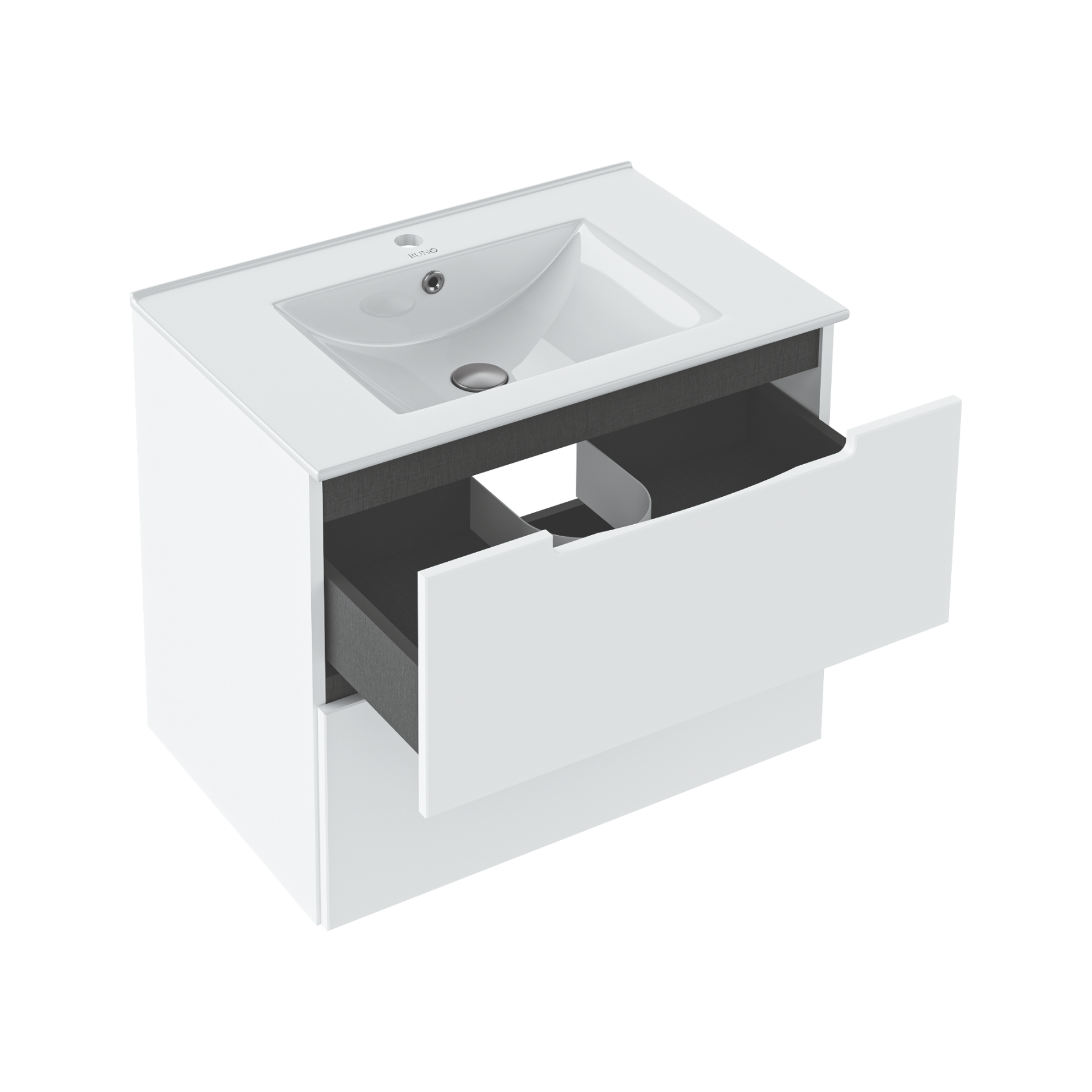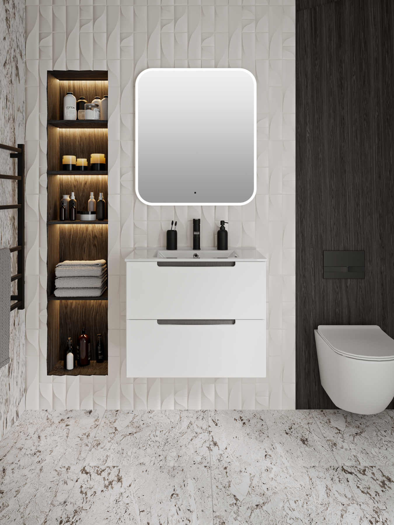 Тумба под раковину Lina (подвесная) — это стильное сочетание классических и модных тенденций в оформлении ванной комнаты. Форма тумбы классическая прямоугольная, тумба в ванную оснащена двумя выдвижными ящиками на шариковых направляющих, оснащенных системой плавного закрывания. Ручки тумбы интегрированные, в сочетании с углублённой фальш панелью контрастного серого цвета выглядят стильно и необычно. В комплекте тумбы навесы для крепления к стене (ответный крепёж тумба-стена, в комплект не входит приобретается отдельно). К тумбе подходит накладная керамическая раковина Teffy 70 (709х463 мм), глубиной 26 см. Тумба подойдёт для разного стиля в помещении: к минимализму с его лаконичностью и простотой, к городскому стилю с его комфортом, функциональностью и индивидуальностью, и даже к классическому стилю с его воплощением элегантности, гармонии и утончённости. Мебель RUNO - это нестандартный подход к дизайну Вашего помещения. Нашу мебель приобретают для городской квартиры или загородного дома, чтобы наслаждаться ее стильным внешним видом и безупречной функциональностью, удобством использования каждый день. В линейке бренда представлены модели в различных расцветках, чтобы вы могли выбрать идеально подходящий вариант для интерьера в стиле лофт, скандинавском или прованс стиле.