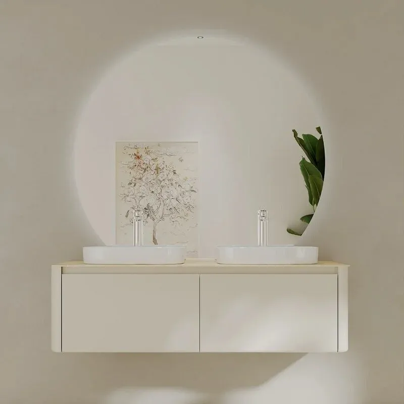 Тумба Black & White U916.1400-2 — идеальный вариант для большой ванной комнаты, где важны удобство и стиль. Эта подвесная тумба оснащена двумя полноценными раковинами из санитарного фарфора, каждая с отдельным отверстием под смеситель, что обеспечивает комфортное совместное использование. Корпус выполнен из влагостойкого МДФ с глянцевой светло бежевой эмалью, а столешница из керамогранита придают изделию современный и элегантный вид. Два выдвижных ящика с доводчиками Blum обеспечивают плавное закрывание и удобство хранения.Размеры