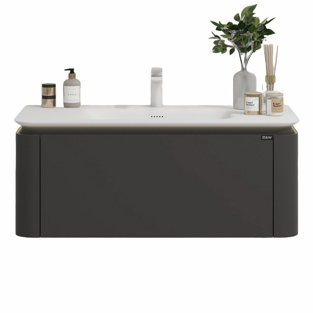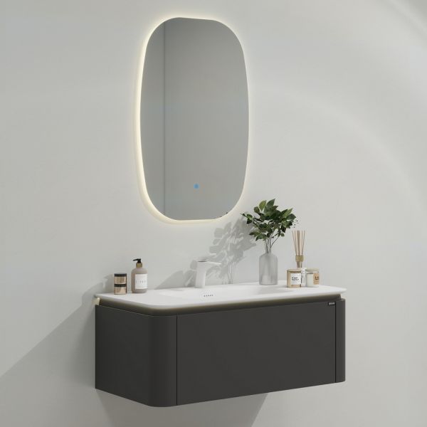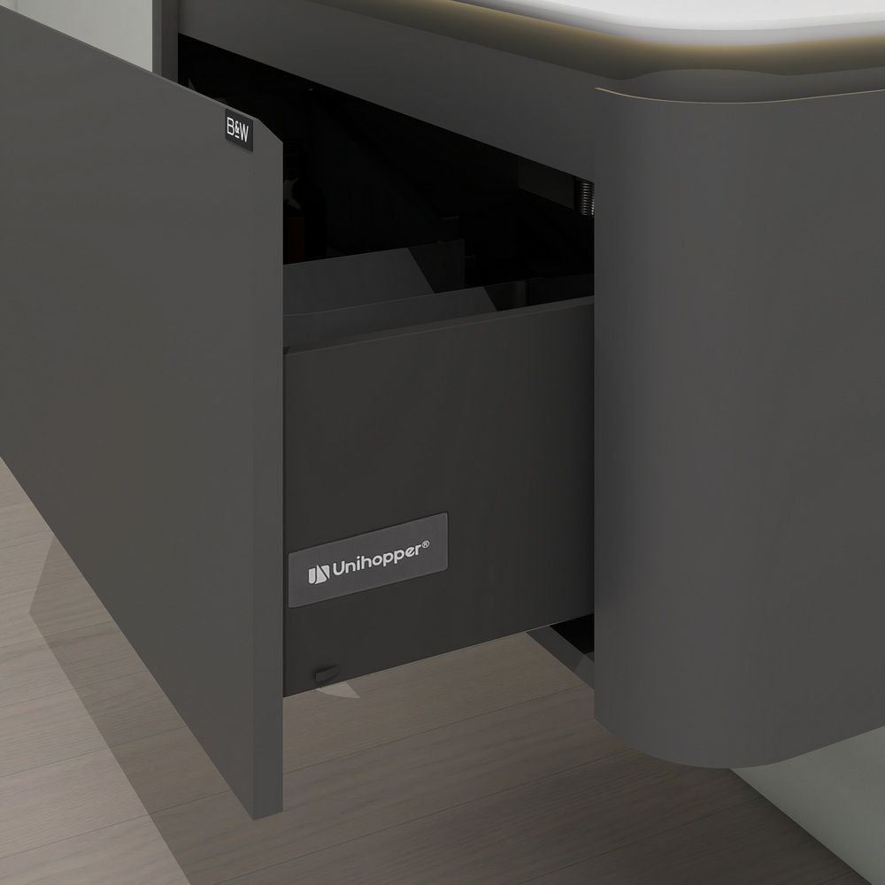 Тумба с раковиной для ванной комнаты датского производителя Black&White в габаритных размерах 120x52x40 см.Данная версия является продолжением линейки U 925 в сером цвете. Раковина — столешница изготовлена из не пористого искусственного камня Corian, который тактильно ощущается как soft touch материал, он легок и прост в уборке,а слив оборудован донным клапаном хромированного цвета. База производится из влагостойкой девятислойной фанеры и покрыта эмалью для долгосрочного сохранения материала.Важной особенностью является контурная диодная подсветка, которая расположена по периметру столешницы.На тумбе предусмотрен один выдвижной ящик, оборудованный фурнитурой UniHopper с доводчиками.Коллекция U 935– эргономичный и продуманный продукт,который наполнит Вашу ванную комнату уютом, а плавные и утонченные формы впишутся в любые современные интерьеры.
