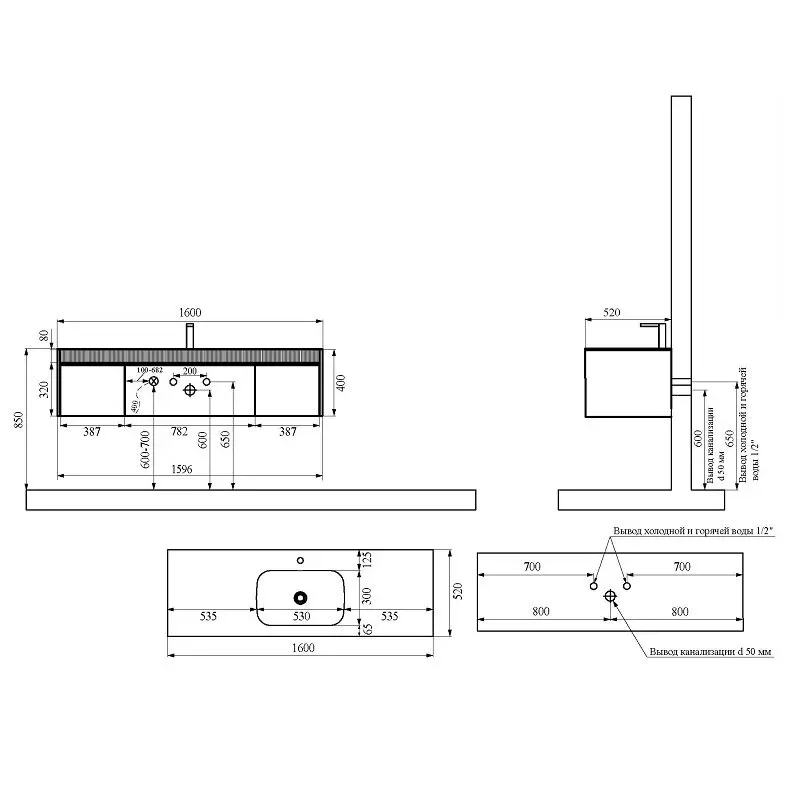 Тумба с раковиной Black&White Universe 9501600 160 см серый матовый купить