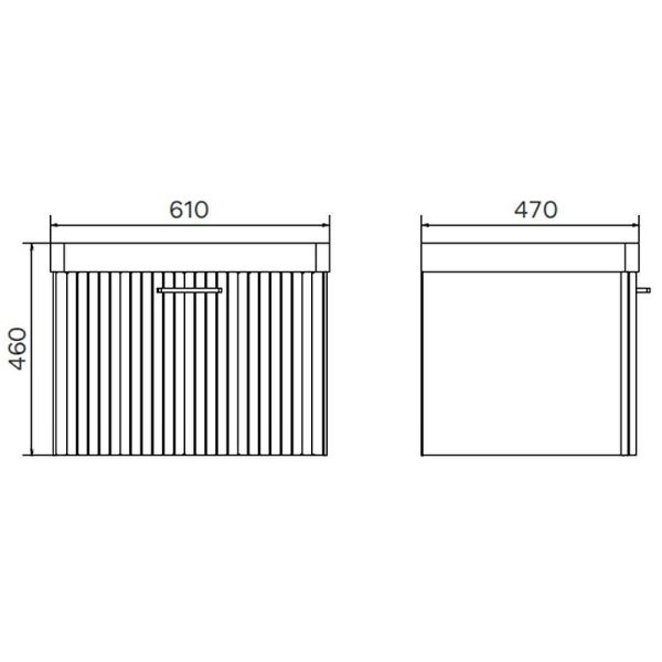 Габариты тумбы с раковиной (ШхВхД): 610х460х470 мм.