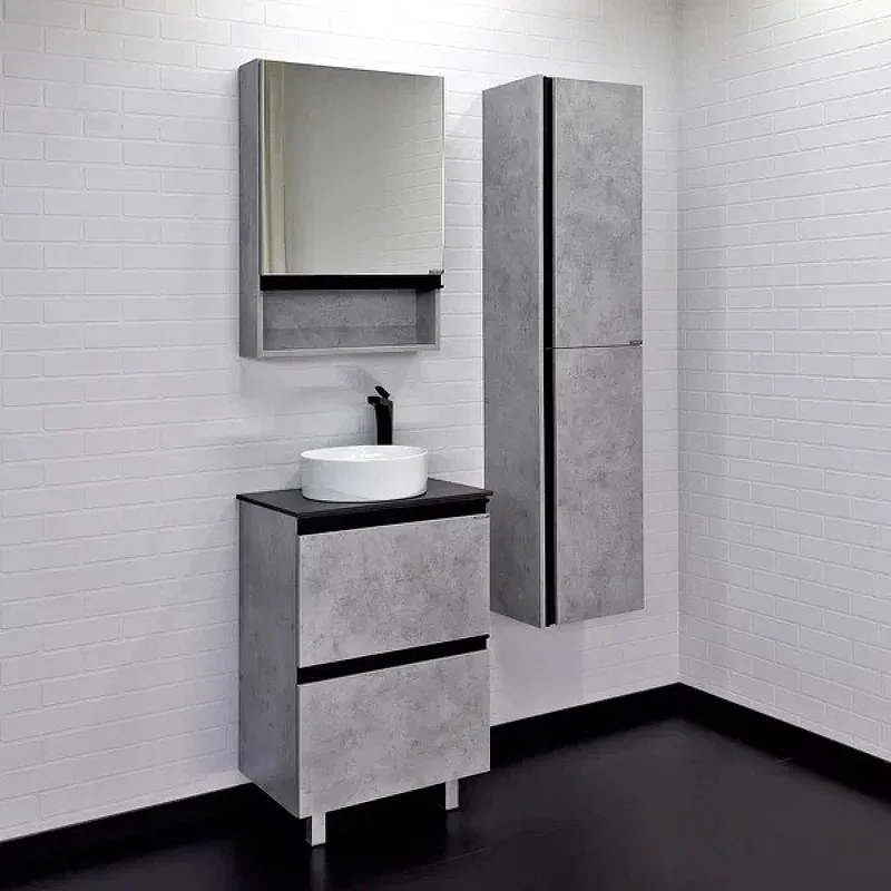 Тумба с раковиной Comforty Эдинбург 00-00004767 60 см Бетон светлыйХарактеристики: Тумба: Цвет: бетон светлый. Габариты вместе с раковиной (ШхВхГ): 60x95x40 см. Материал фасада и корпуса: ВЛДСП. Система хранения: выдвижные ящики. Оснащение: механизм доводчика, обеспечивающий плавное закрывание. Монтаж: полуподвесной. Тумба подготовлена для подключения водоснабжения снизу. Раковина-чаша: Материал: санфарфор. Цвет: белый. В комплекте поставки: тумба, раковина-чаша Comforty 9111, 2 ножки, 2 черные матовые профильные ручки, столешница из черного керамогранита, крепления