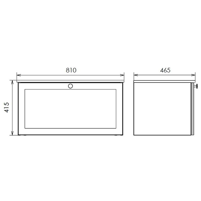 Габариты тумбы с раковиной (ШхВхД): 810х415х465 мм.