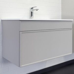 Тумба с раковиной Comforty Мадрид 00-00018685 81 см Серый шелкПодвесная тумба с одним большим выкатным ящиком оборудованным направляющими с системой плавного закрывания. Корпус тумбы изготовлены из влагостойкого ЛДСП. Фасад тумбы из МДФ фрезерован кантом по периметру. Подпорная царга фрезерована вертикальным узором. Корпус и фасад тумбы затянуты в матовую пленку цвета серый шёлк. Тумба подготовлена для подключения водоснабжения снизу и сзади.Характеристики:Тумба:Цвет: серый шелк.