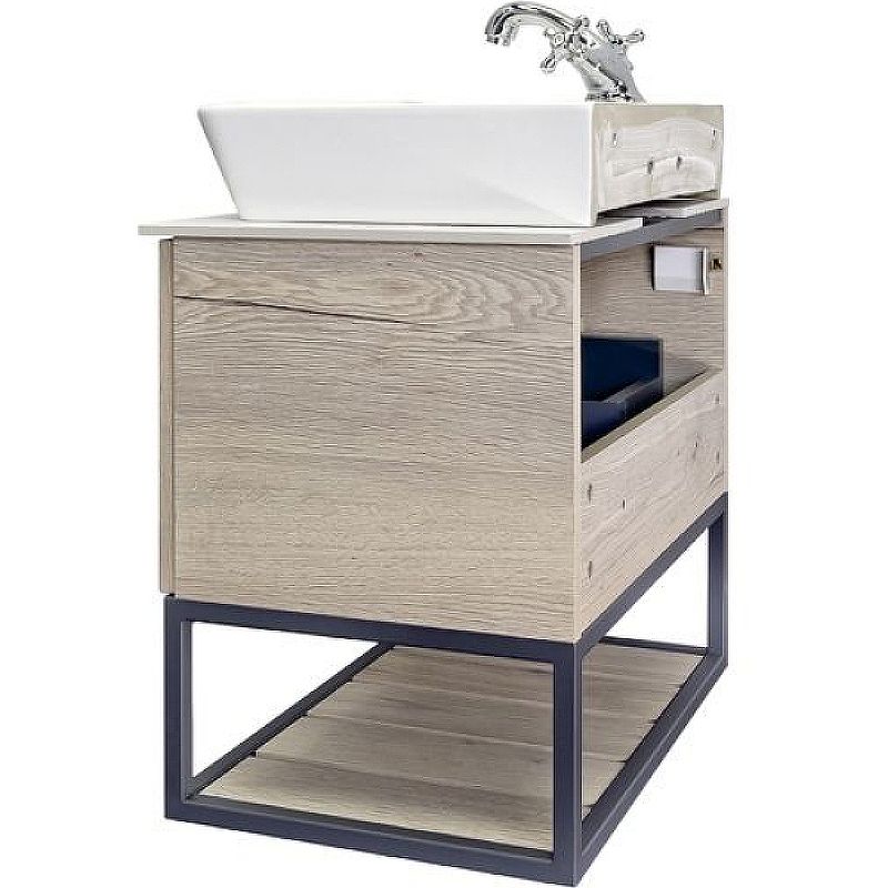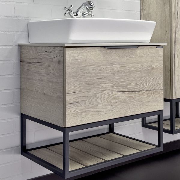 Тумба с раковиной Comforty Порто 00-00011395 60 см Дуб дымчатыйПодвесная тумба-умывальник в стиле лофт Порто 60 с одним выдвижным ящиком оснащенным системой плавного закрывания и нижней полкой открытого хранения для полотенец. В основе тумбы - каркас из стального профиля окрашенный в черный цвет.
