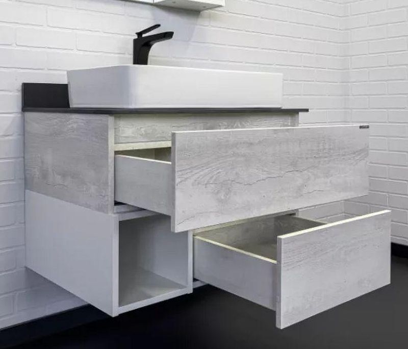 Тумба с раковиной Comforty Прага 00-00014831 75 см Дуб белыйТумба-умывальник в современном стиле с двумя выкатными ящиками и пространством для открытого хранения. Ящики оснащены направляющими с системой с плавного закрывания. Тумба укомплектована столешницей и плинтусом из керамогранита цвета графит.Характеристики:Тумба:Цвет: дуб белый.