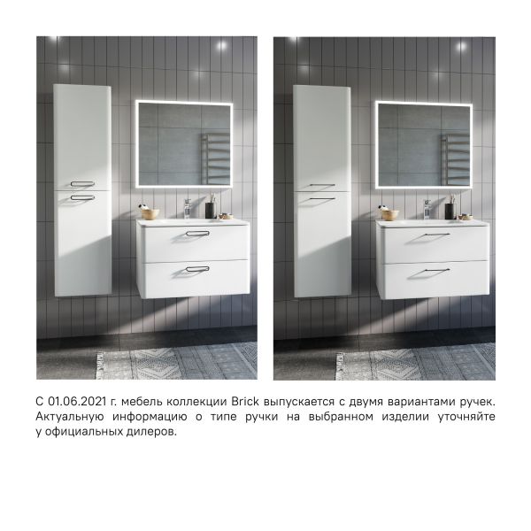 Тумба с раковиной IDDIS Brick подвесная 80см белый BRI80W0i95K