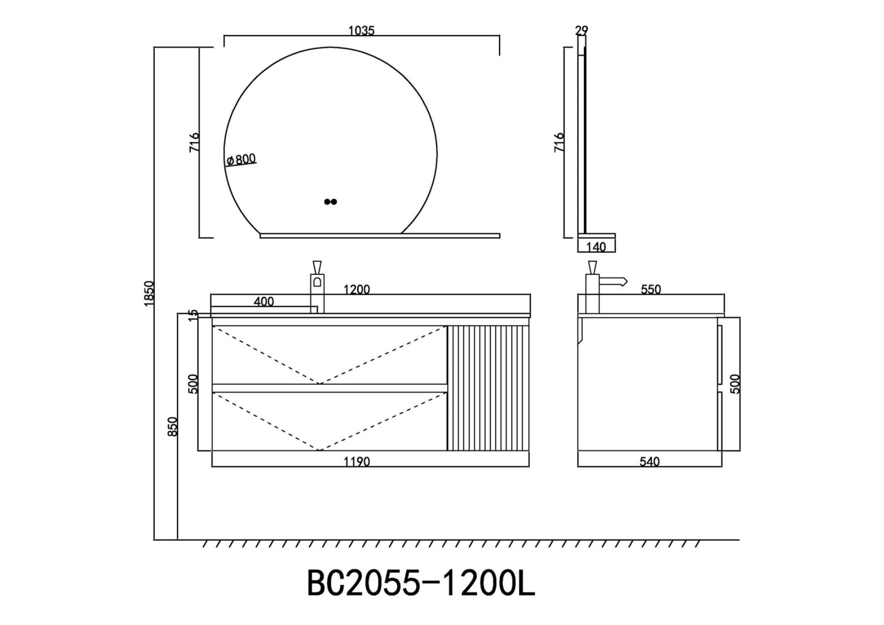 Тумба с раковиной Orans BC-2055-1200L-2GC 2055120L2GC 120 см зелёный