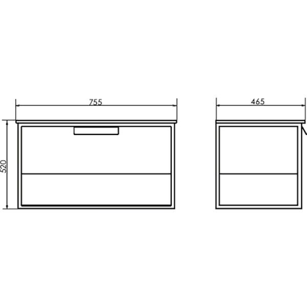 Система хранения: один выдвижной ящик и открытая полочка.