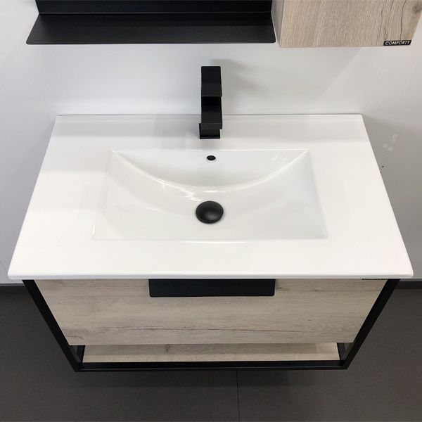 Тумба с раковиной Comfortу Бонн-75, подвесная, дуб дымчатый, раковина Comforty 75E белая, 00-00001948Тумба с раковиной